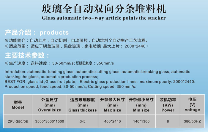 產(chǎn)品名稱(chēng):玻璃全自動(dòng)雙向分條堆料機(jī)